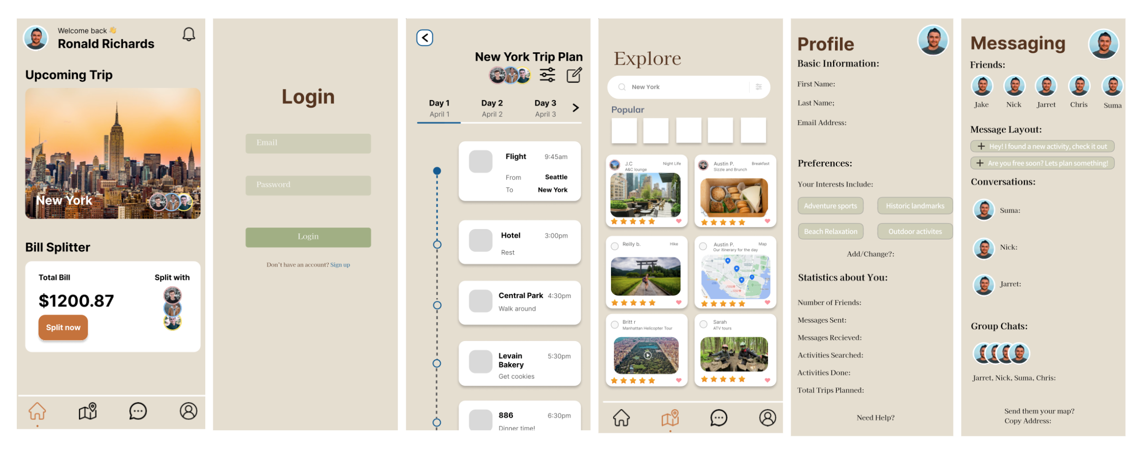 Guided by our initial research, we wanted to prioritize a variety of different planning pain points, differentiating our design from existing products on the market by combining a numerous amount of features such as a bill splitter feature, or even a messaging feature